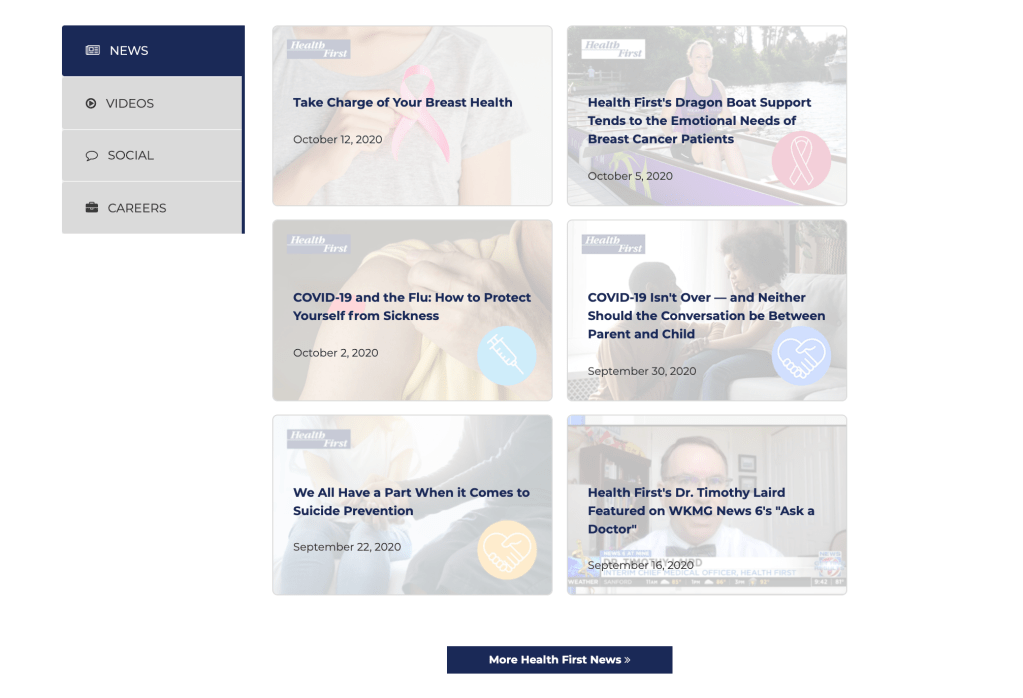 Health First: 2020 Web Projects – News and Media, Web, Asset Updates